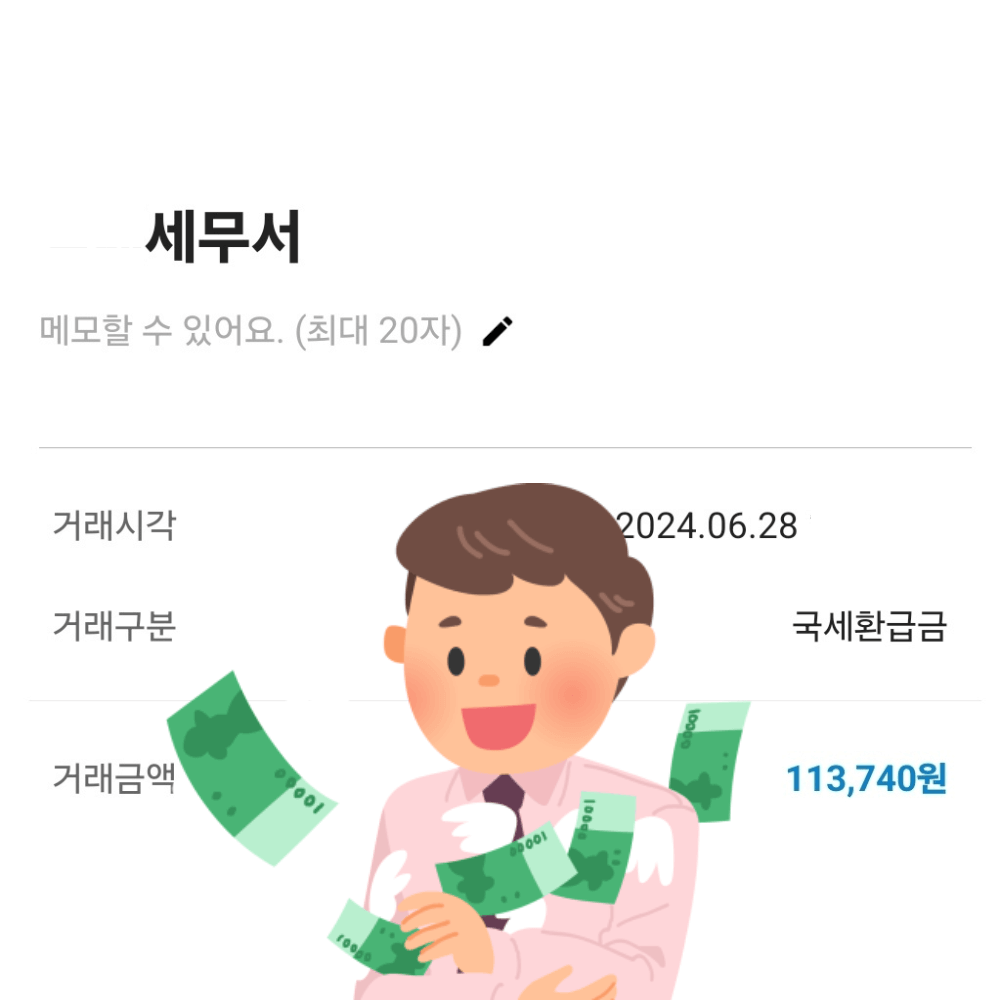 그러한 환급 시기가 6월 28일 전후로 입금되기 때문에 해당 세무서 입금 된 돈이 무슨 돈인지 알 수 있습니다.