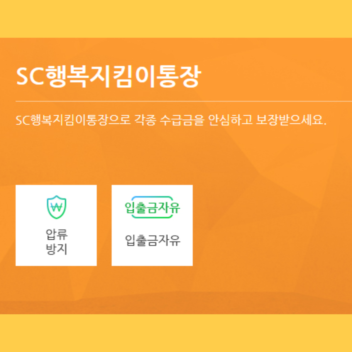 제일은행(sc은행, 스탠다드차타드)의 압류방지통장 이름은 sc행복지킴이통장입니다.